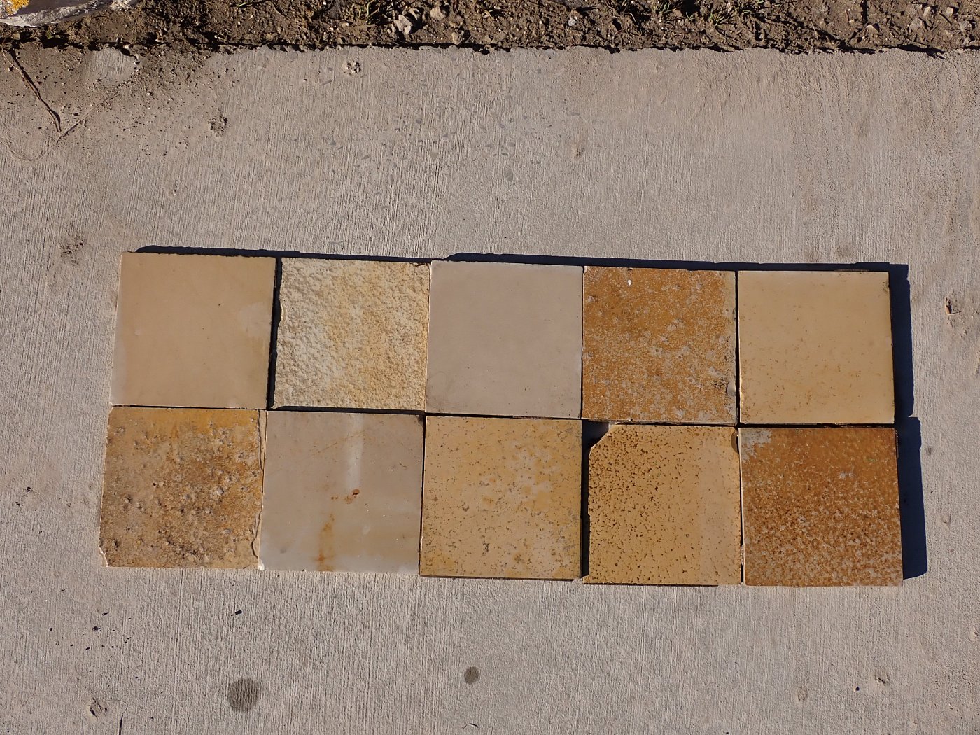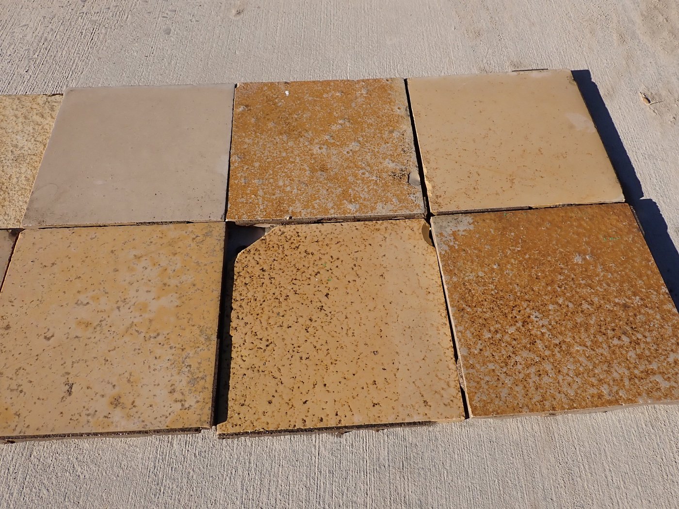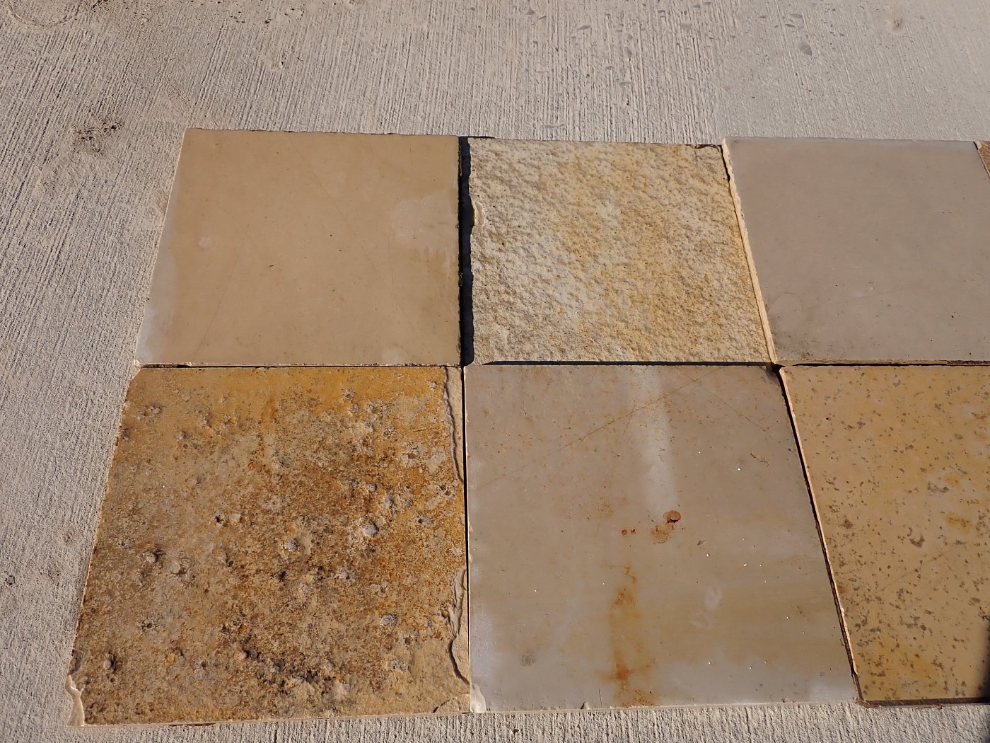 Großer Posten quadratischer Solnhofer Wandfliesen mit gesägter Kante.