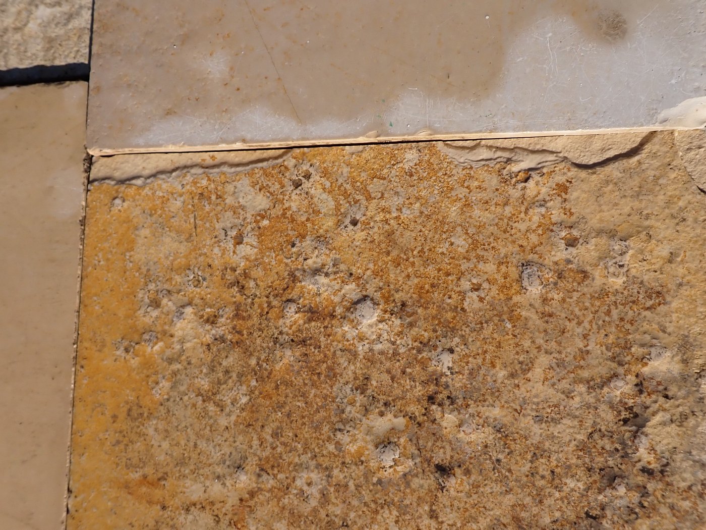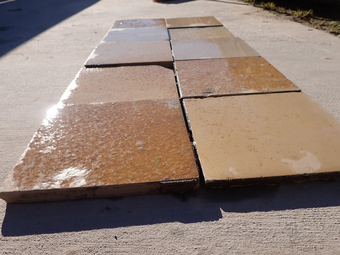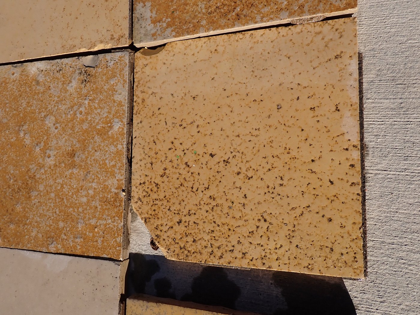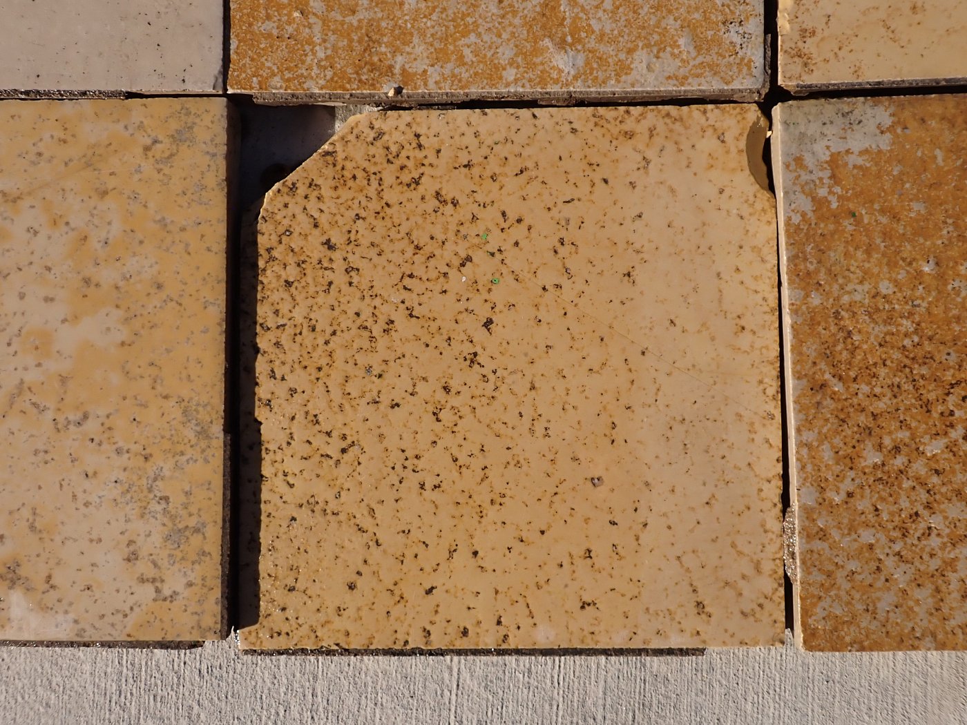 Großer Posten quadratischer Solnhofer Wandfliesen mit gesägter Kante.